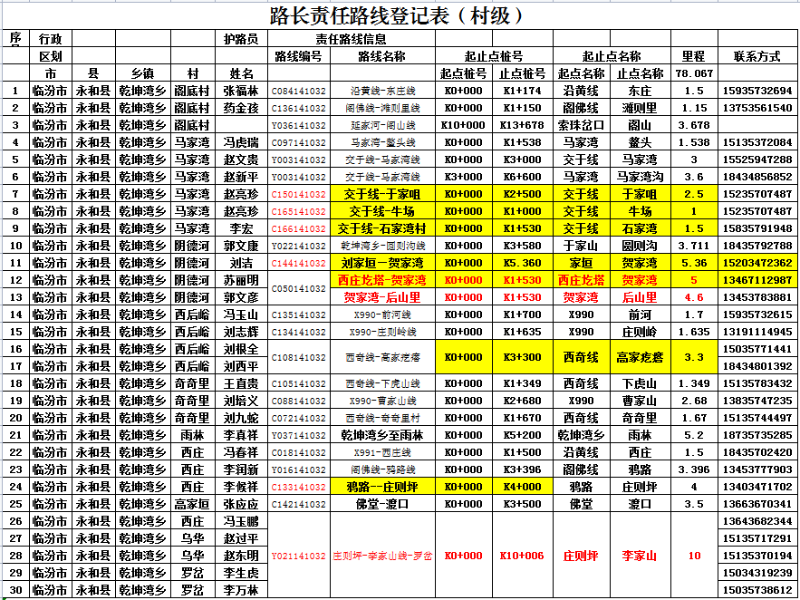 交口乡路长信息表